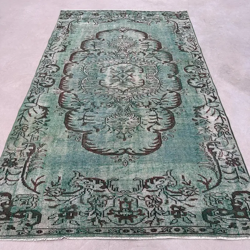 Eleganter grüner Orientteppich, 5,5 x 7,8 Fuß, schickes Dekor