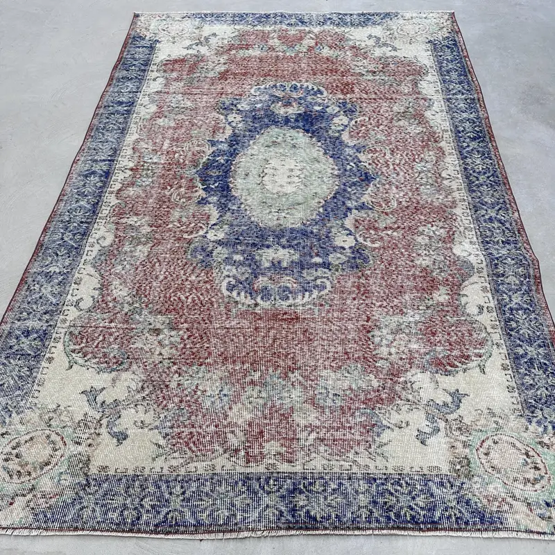 Teppich mit roten und blauen Punkten, 5,6 x 8,4 Fuß, schickes Dekor