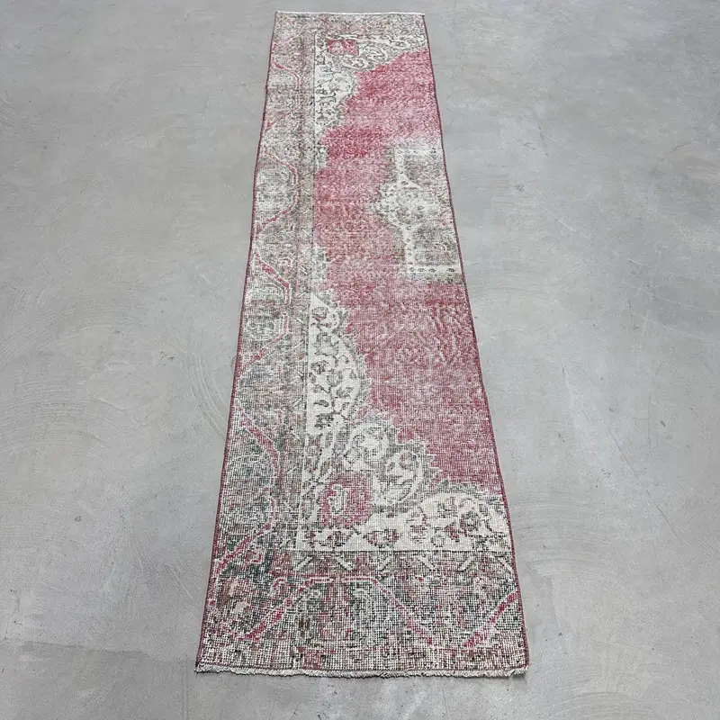 Roter Orientteppich, 1,9x8,2 Fuß mit grünen Akzenten