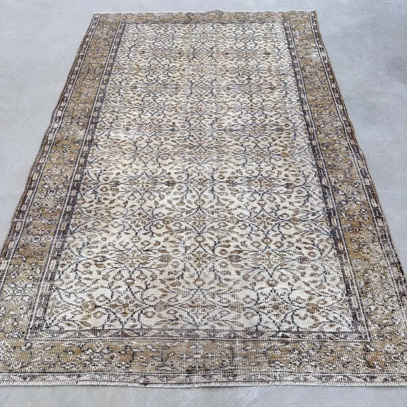 Eleganter beiger Ikat-Teppich, 5,4 x 8,6 Fuß, braune Akzente
