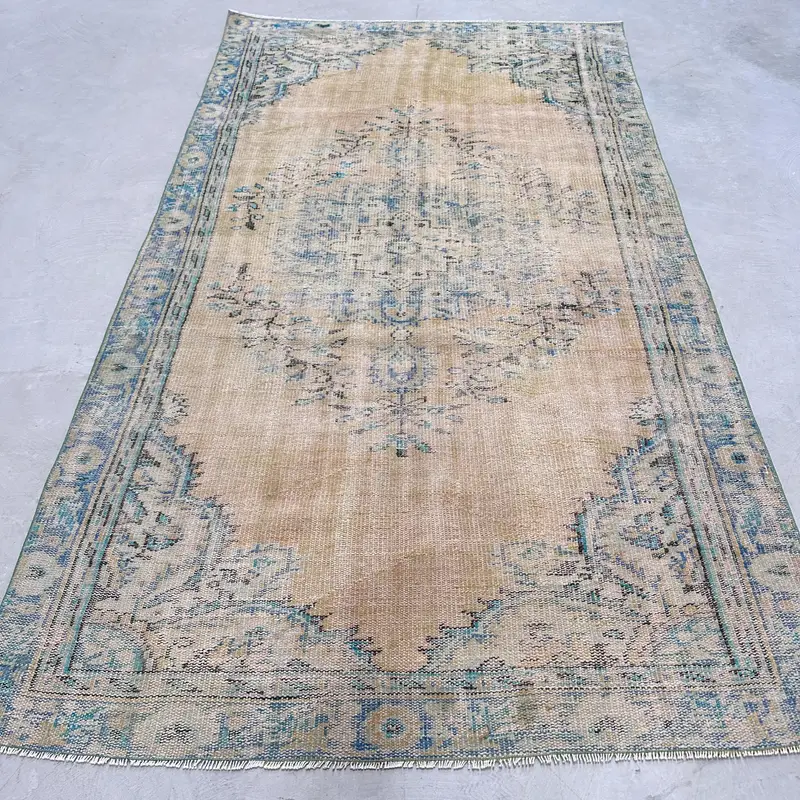 Gelber Ombré-Teppich, 5,1 x 8,7 Fuß mit grünen Akzenten