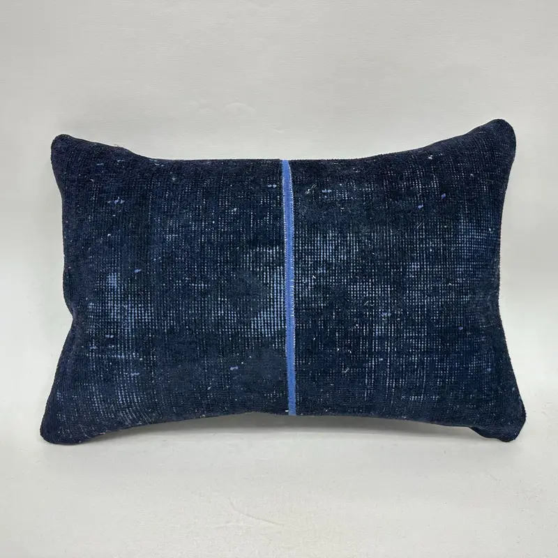 Blaues und bronzefarbenes Patchwork-Wurfkissen, 16 x 24 besticktes Kissen