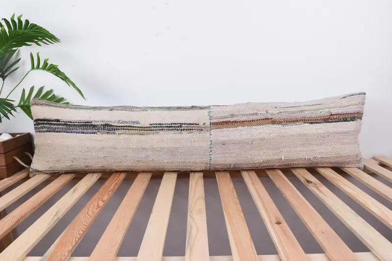 Besticktes Patchwork-Wurfkissen in Beige und Bronze, handgefertigtes Vintage-Rechteckkissen