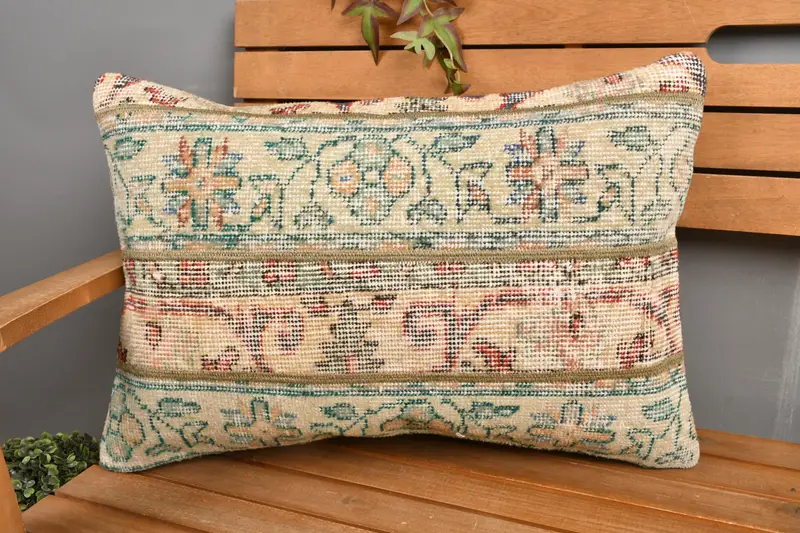 Beige & braunes Patchwork-Wurfkissen, handgefertigtes besticktes Kissen