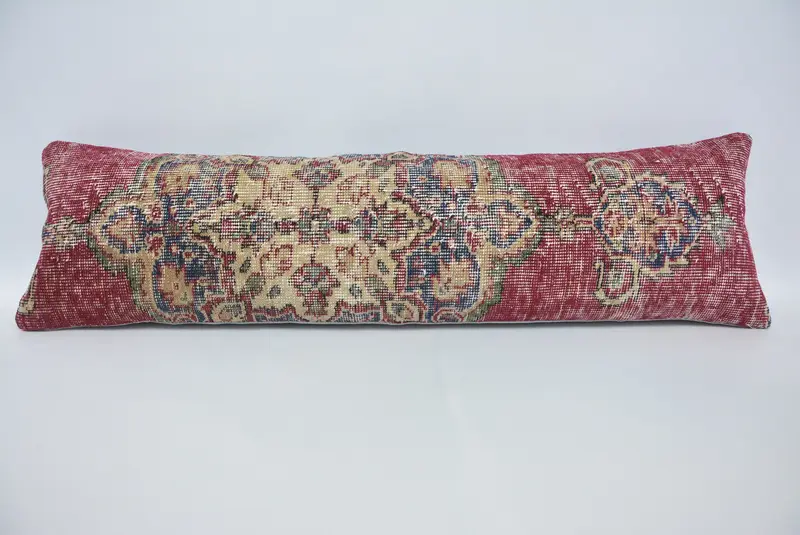 Rot & Beige gestreiftes Kissen, Vintage besticktes Kissen