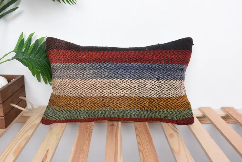 Regenbogen gestreiftes Kissen, handgefertigtes besticktes Kissen