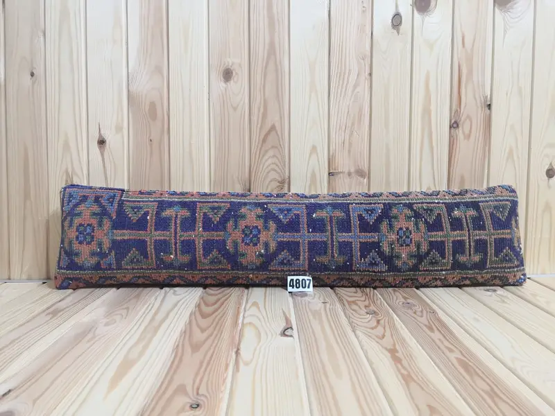 Handgefertigtes blaues und orangefarbenes geometrisches Wollkissen, Vintage-Rechteckkissen