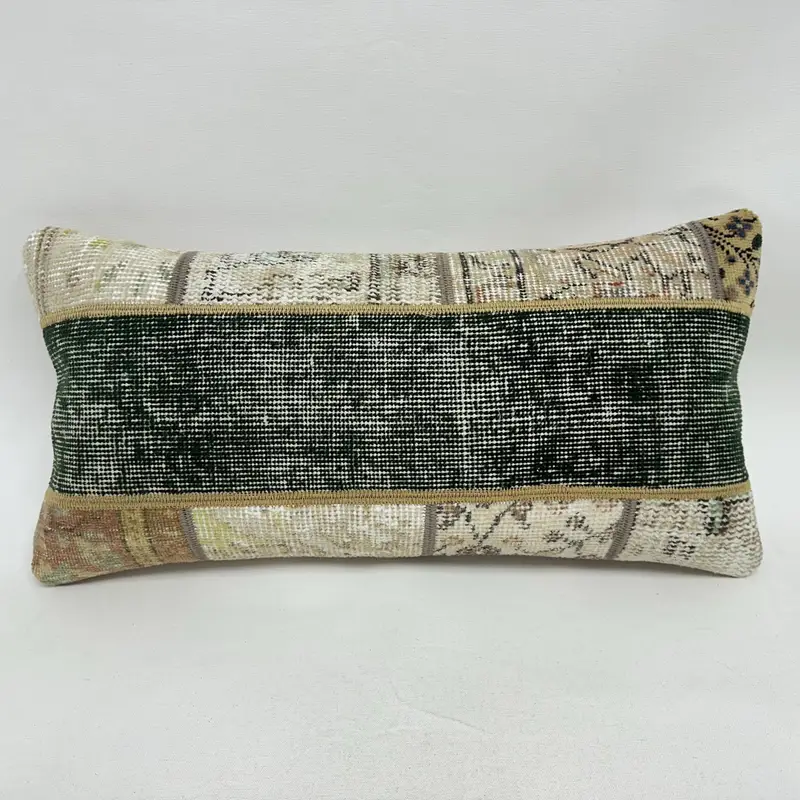 Schwarz & Beige besticktes Patchwork-Wurfkissen, handgemachtes Leinenkissen