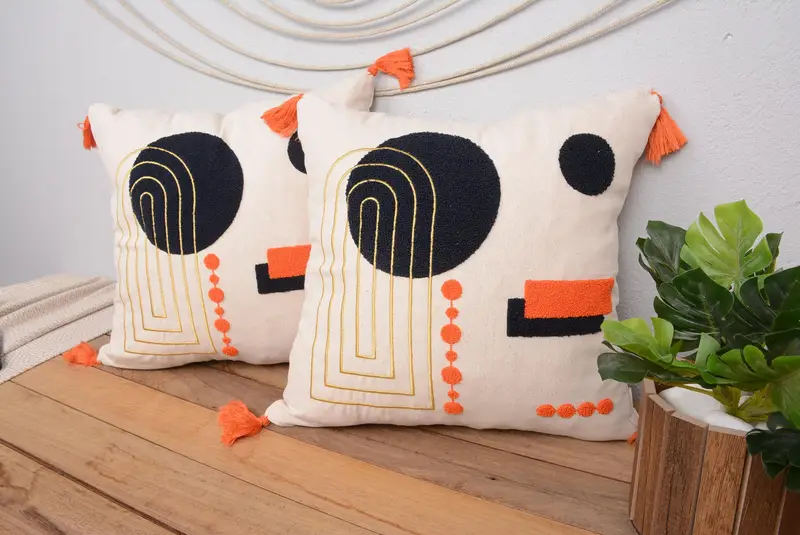 Handgefertigtes südwestliches besticktes Kissen, Vintage 16x16 Wurfkissen