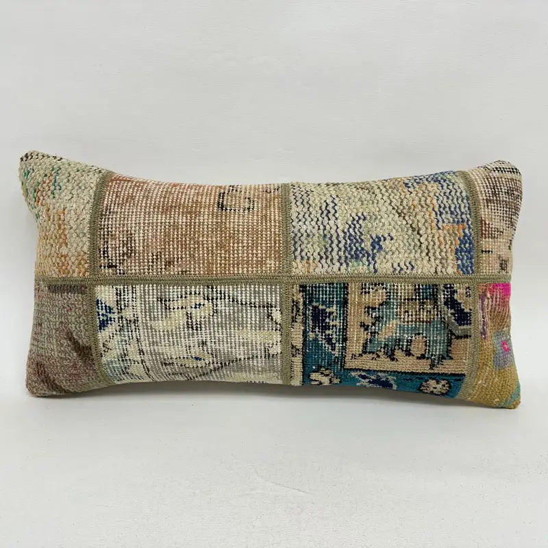 Beige & Bronze Patchwork-Wurfkissen, 12x24 handgemachtes Leinenkissen