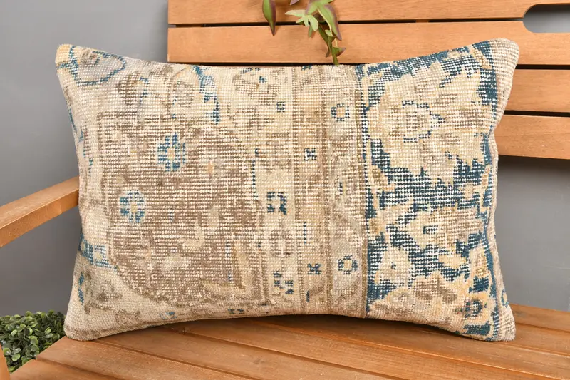 Handgefertigtes Kissen mit Blumenmuster in Beige und Braun, 16 x 24 Vintage-Kissen