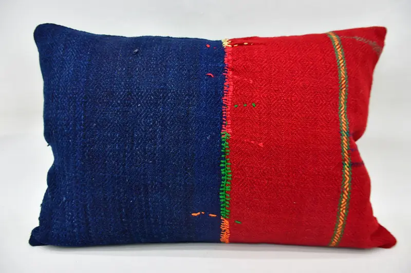 Rot gestreiftes Kissen mit bronzenen Akzenten, besticktes Wurfkissen