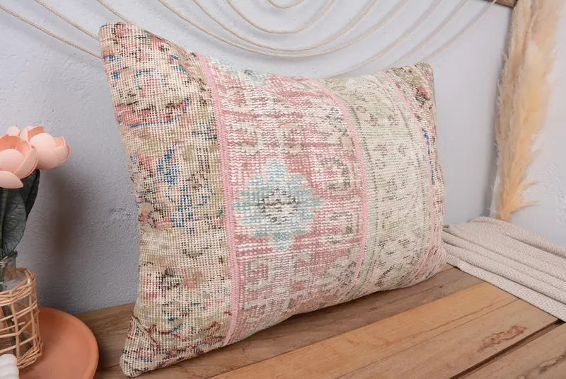 Patchwork-Wurfkissen in Beige und Rosa, 20 x 28 besticktes Kissen