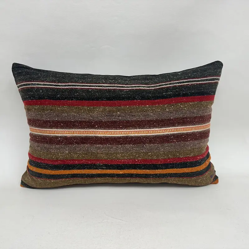 Gesticktes braunes und graues Kissen, 16x24 handgemachtes Wurfkissen