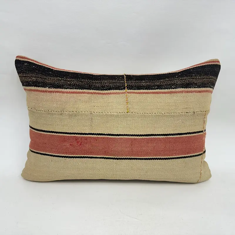Beige & braunes Patchwork-Wurfkissen, handgefertigtes besticktes Kissen