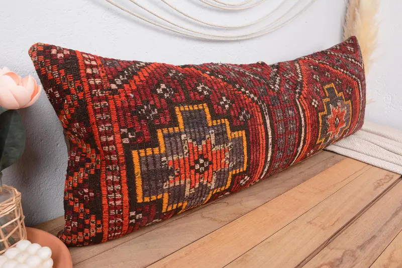 Rotes besticktes Southwestern-Wurfkissen, handgefertigtes Vintage-Kissen