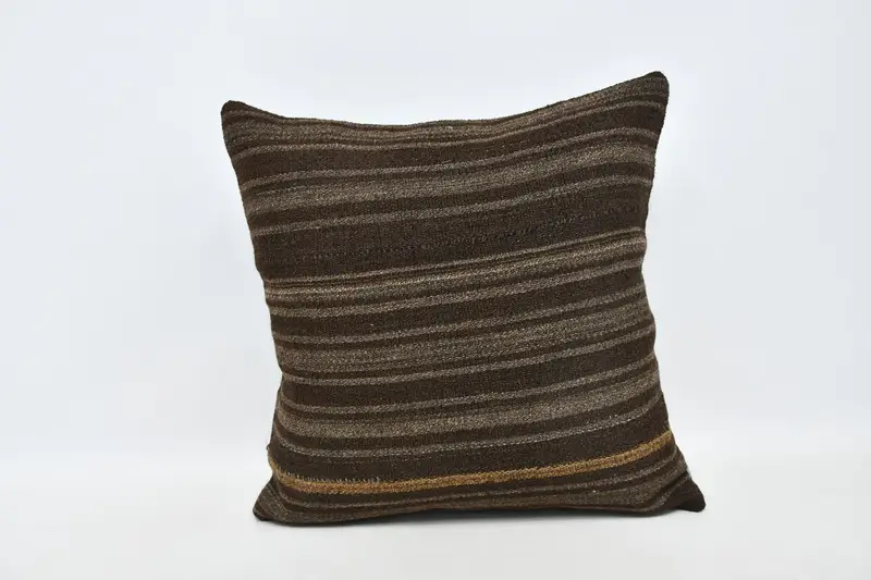 Braun und Beige gestreiftes Wurfkissen, 22x22 besticktes Kissen