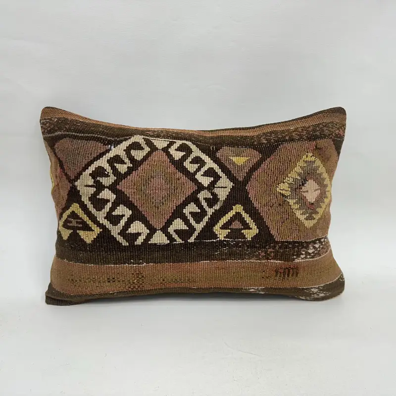 Geometrisches braunes und beiges Leinenkissen, 16x24 handgemachtes Wurfkissen