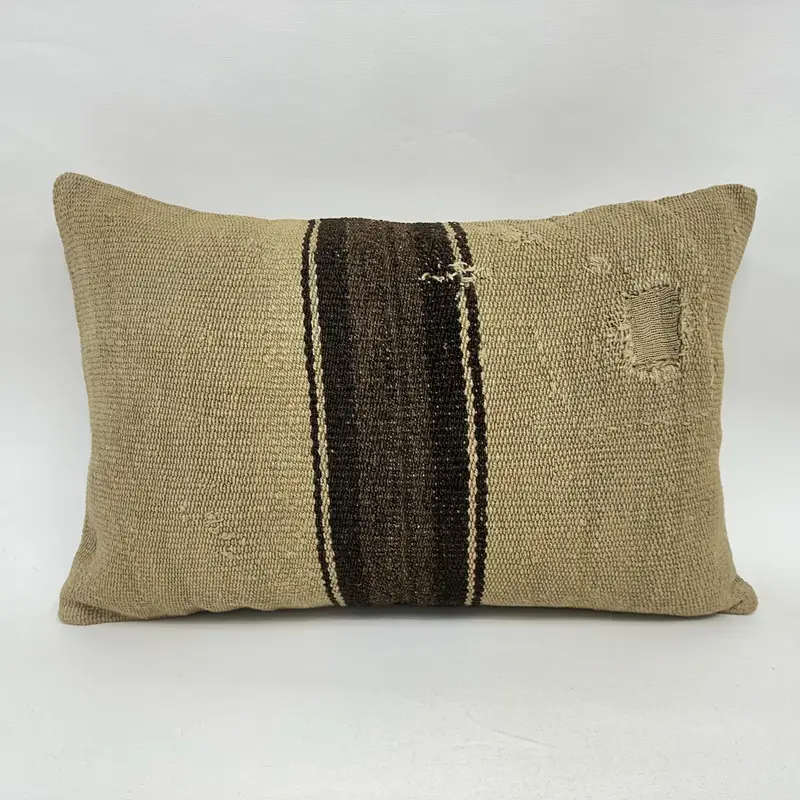 Beige & braun gestreiftes Kissen, handgefertigtes besticktes Wurfkissen