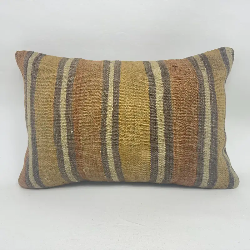 Beige und braun gestreiftes Kissen, besticktes Vintage-Wurfkissen