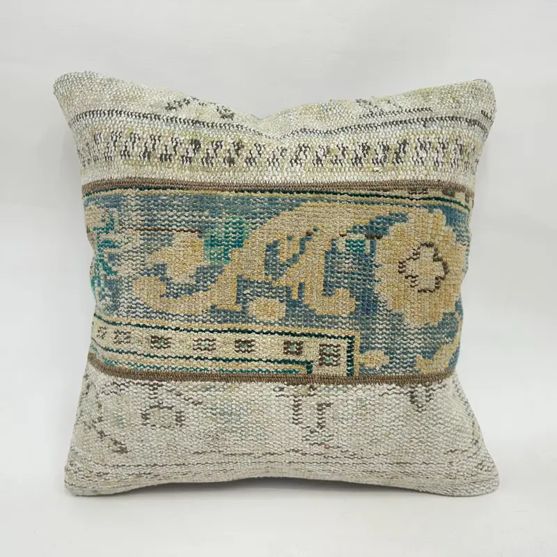 Blaues und beiges Patchwork-Wurfkissen, 20x20 besticktes Kissen
