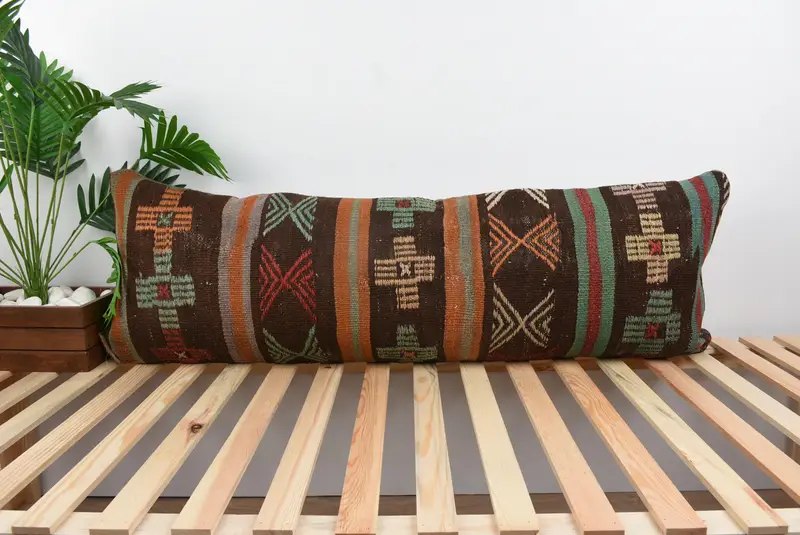 Braunes Southwestern besticktes Wurfkissen, handgemachtes Vintage Kissen