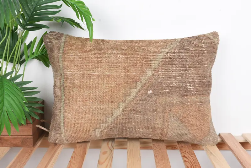 Braunes und beiges Patchwork-Wurfkissen, 16 x 24 handgefertigtes Kissen
