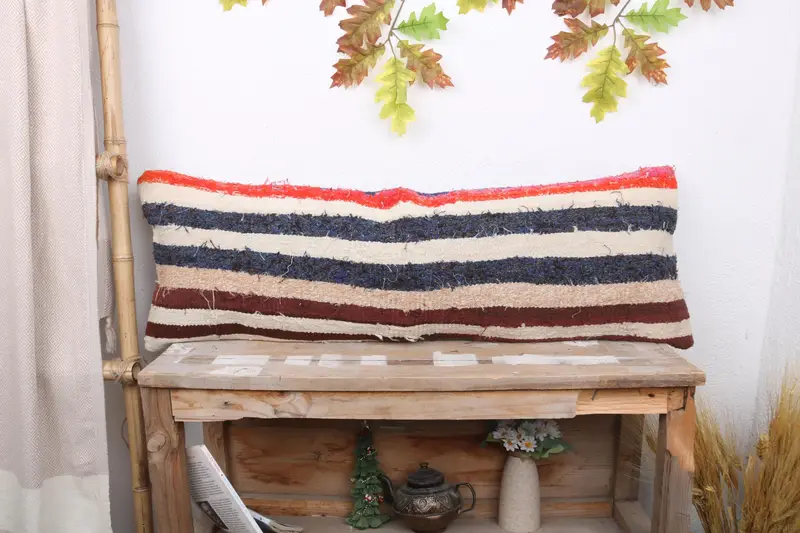 Handgefertigtes gestreiftes Leinen-Wurfkissen, 12x36 besticktes Kissen