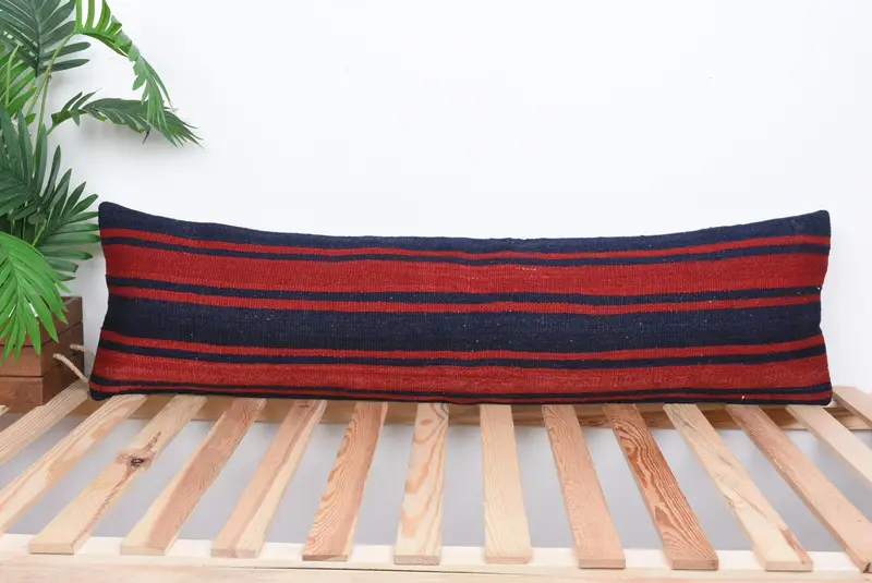 Rot-braun gestreiftes Kissen, handgefertigtes besticktes Kissen