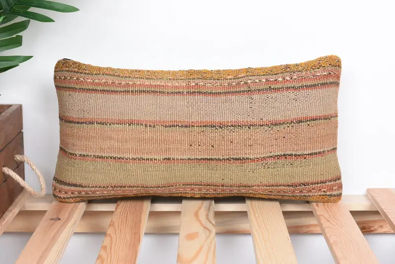 Braun gestreiftes Kissen, 8x16 handgemachtes besticktes Kissen