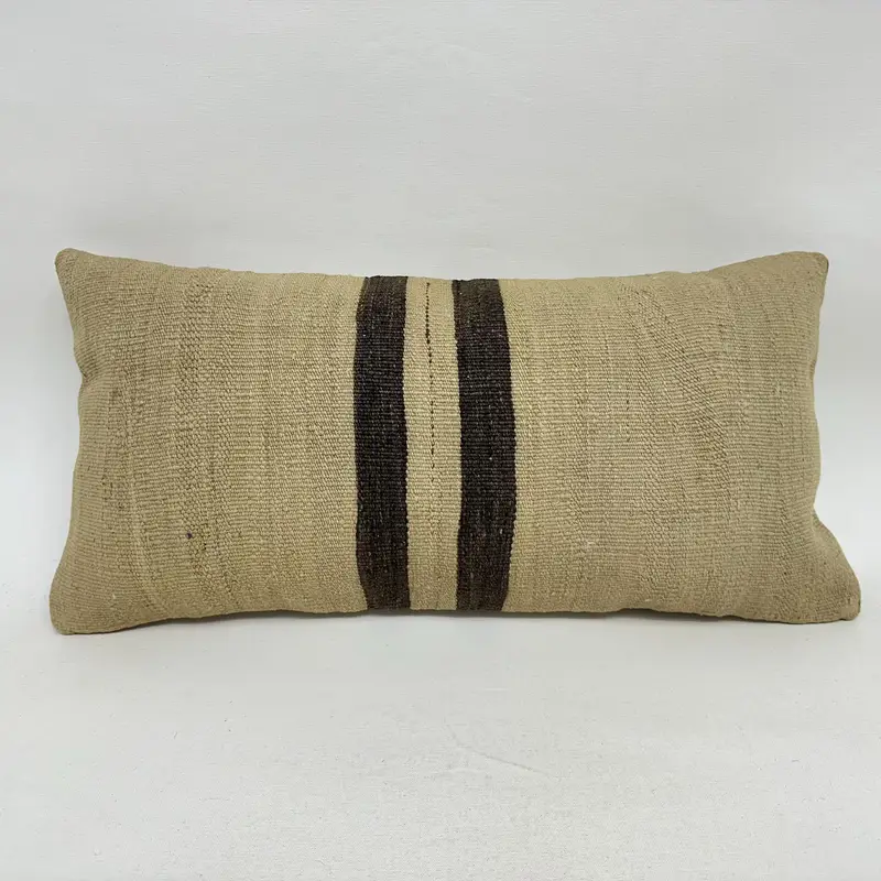 Beige & braun gestreiftes Kissen, 12x24 Vintage Wurfkissen