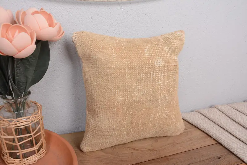 Beige besticktes Southwestern-Wurfkissen, 12x12 handgefertigtes Kissen