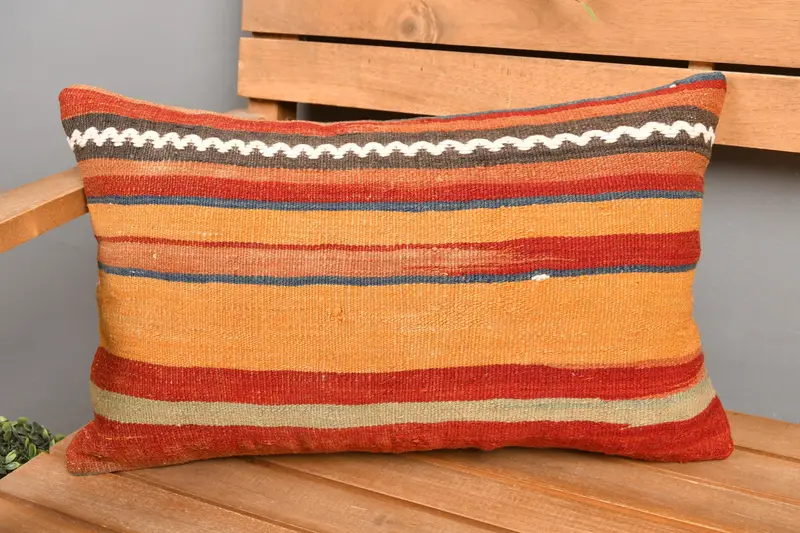 Orange & rot gestreiftes Wurfkissen, besticktes Vintage Kissen