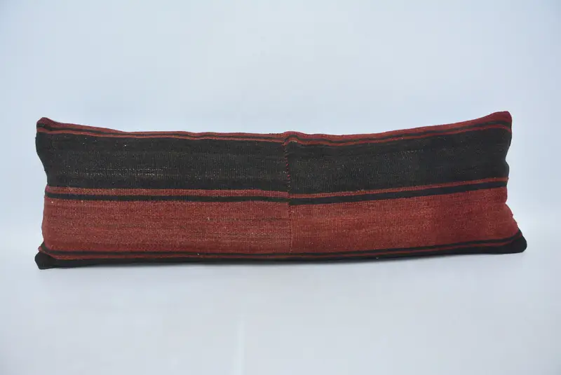 Braun & rot gestreiftes Kissen, Vintage besticktes Kissen