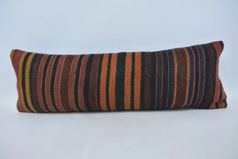 Handgefertigtes 12x36 braun & orange gestreiftes Wurfkissen, Vintage Dekor