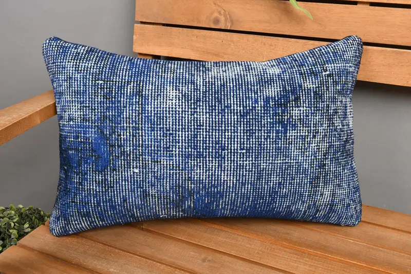 Handgefertigtes blaues und bronzefarbenes Southwestern-Wurfkissen, Vintage-Rechteckkissen