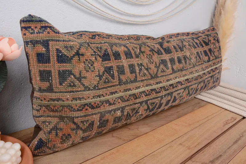 Blaues und oranges Patchwork-Wurfkissen, handgefertigtes besticktes Rechteckkissen