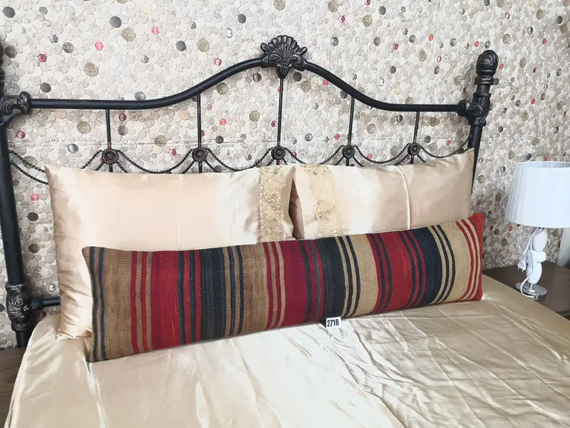 Handgefertigtes gestreiftes Wollkissen, Vintage Rechteckiges Kissen