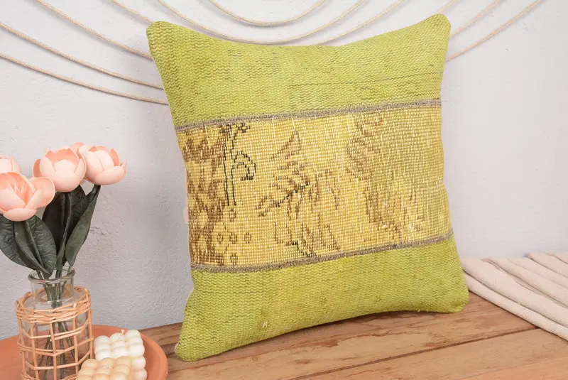 Handgefertigtes 20x20 grünes und braunes Patchwork-Wurfkissen, Vintage-Kissen
