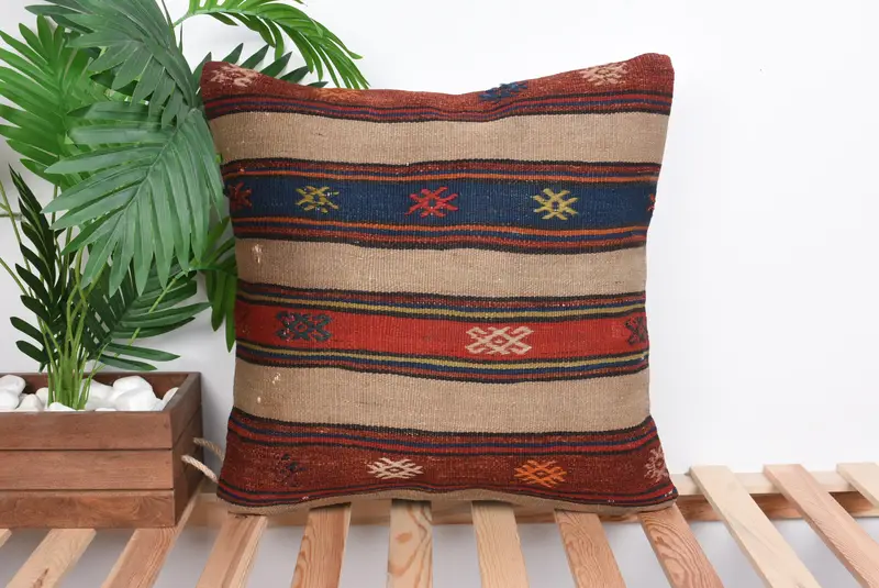 Rot & Bronze gestreiftes Kissen, besticktes Vintage-Kissen