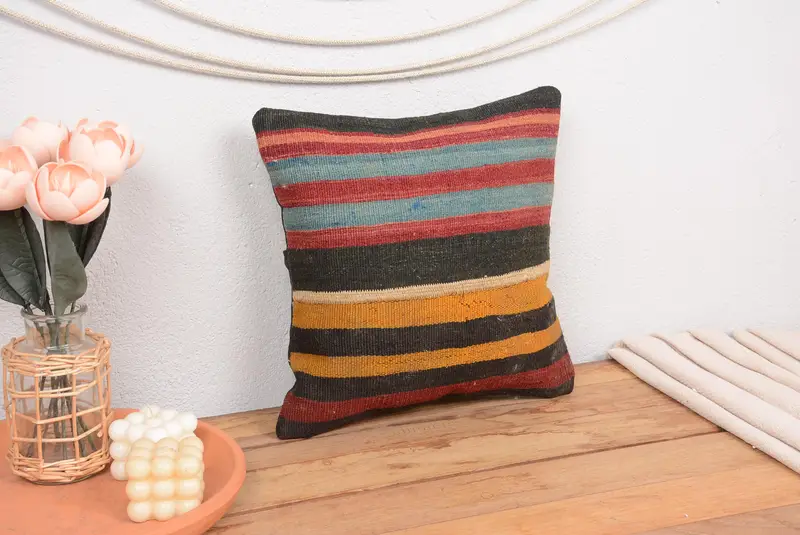 Braun & Rot gestreiftes Kissen, Vintage besticktes Kissen