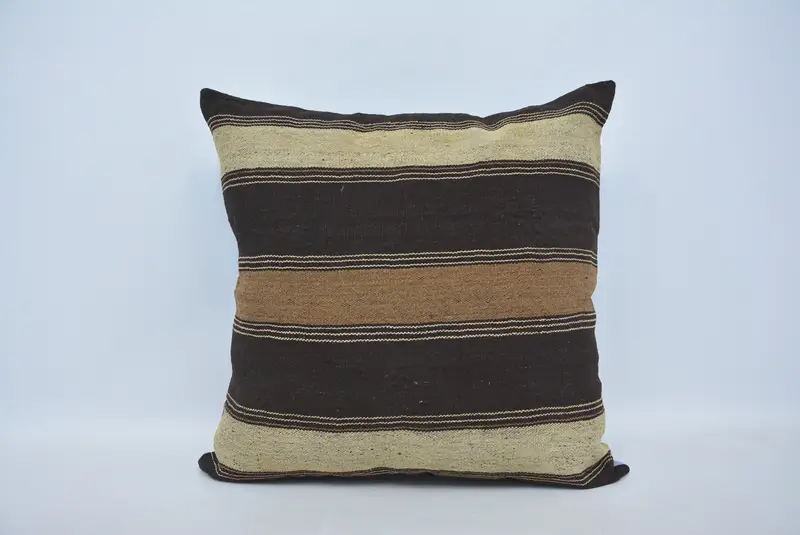 Gesticktes Vintage-Wurfkissen, gestreiftes Kissen in Braun und Beige
