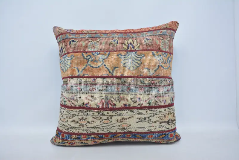 Orange & Beige Southwestern Kissen, handgemachtes Hanf & Wollkissen