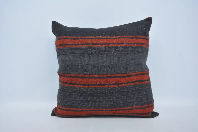 Blau-rot gestreiftes Wurfkissen, 28x28 besticktes Kissen