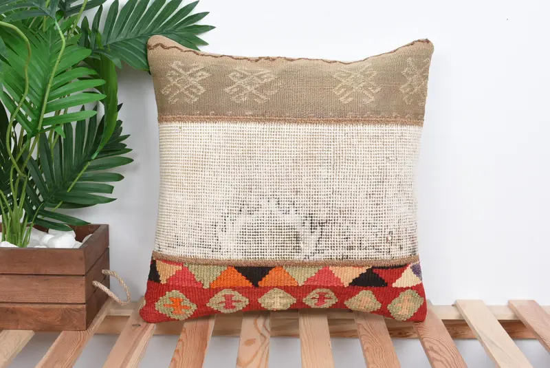 Handgefertigtes Leinen-Wurfkissen, besticktes Patchwork-Design-Wurfkissen
