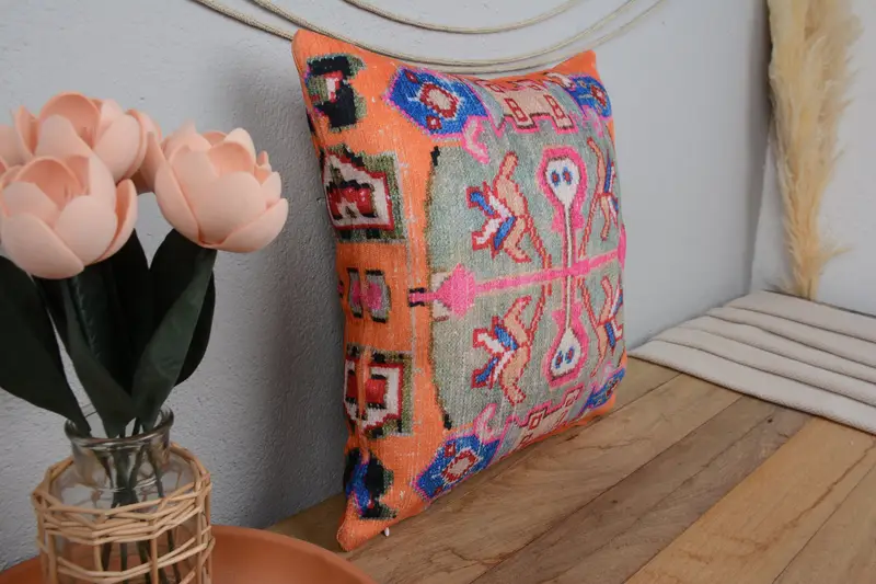 Orange & Bronze besticktes Wurfkissen, Vintage Quadratisches Kissen