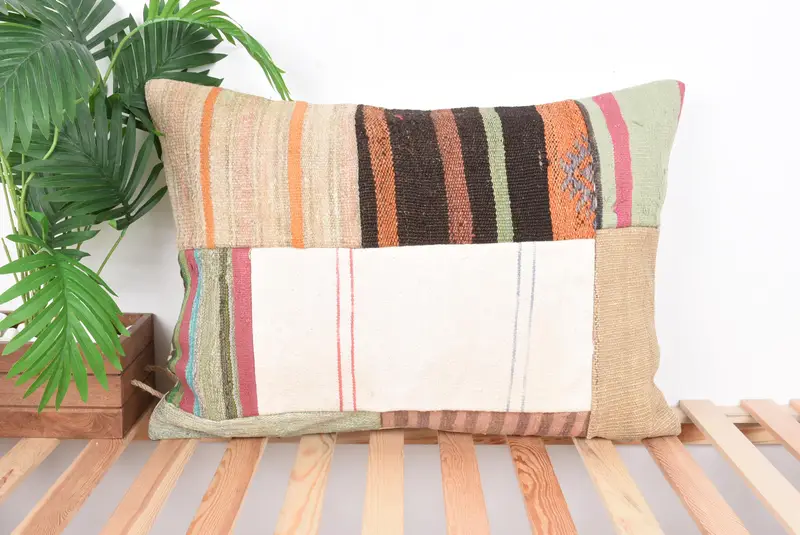 Handgefertigtes gestreiftes Kissen, besticktes Leinenkissen mit Reißverschluss