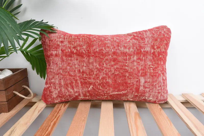 Rotes besticktes Southwestern-Wurfkissen, handgefertigtes Vintage-Kissen