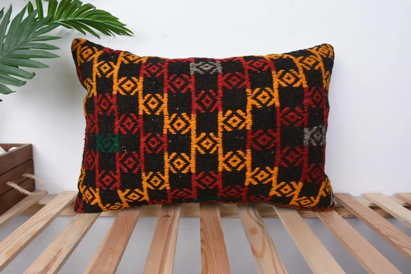 Handgefertigtes geometrisches Kissen in Braun und Orange, vielseitiges Leinenkissen
