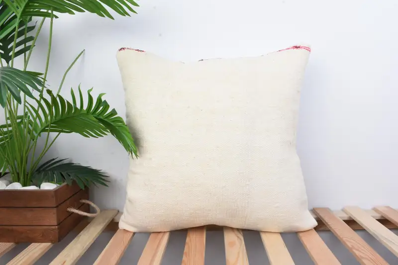 Beige besticktes Southwestern-Wurfkissen, handgefertigtes Vintage-Kissen